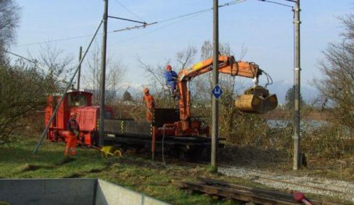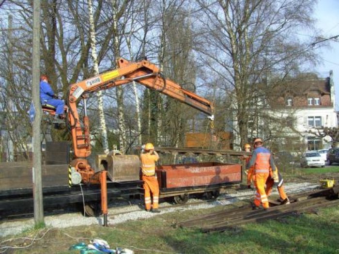 Die Vereinsmitglieder haben im Winter 2010/2011 aus einem alten Güterwagen – Untergestell und einem Hiab-Kran einen Kranwagen mit abtrennbarem Stromerzeuger konstruiert und gebaut. Da der Kran 360° schwenkbar ist und bis 12m ausgefahren werden kann, erleichtert er die anfallenden Streckenunterhaltsarbeiten massiv.